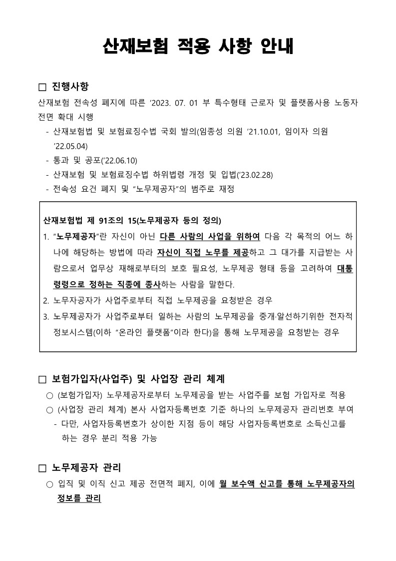 산재보험 확대 적용 - 근로복지공단