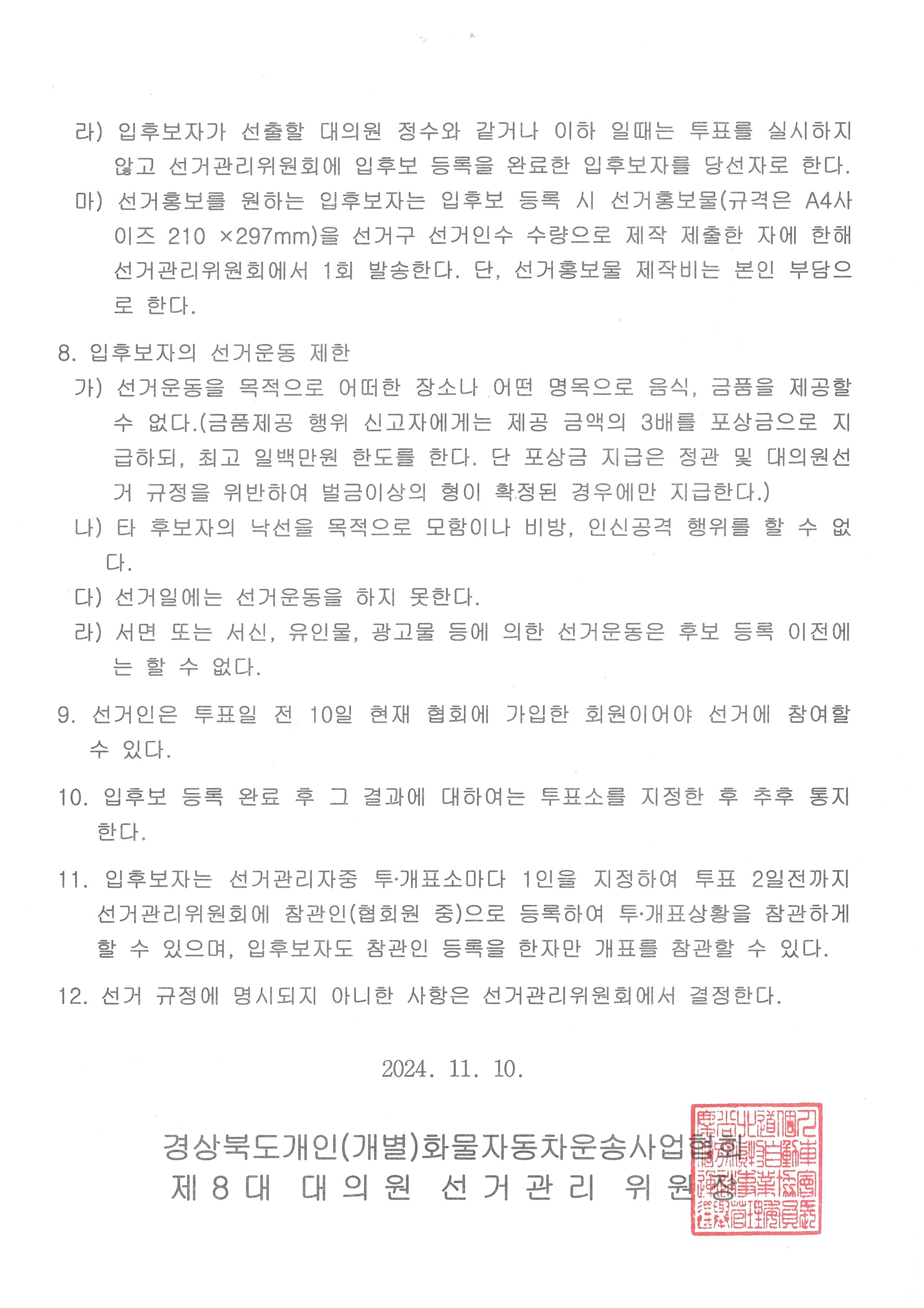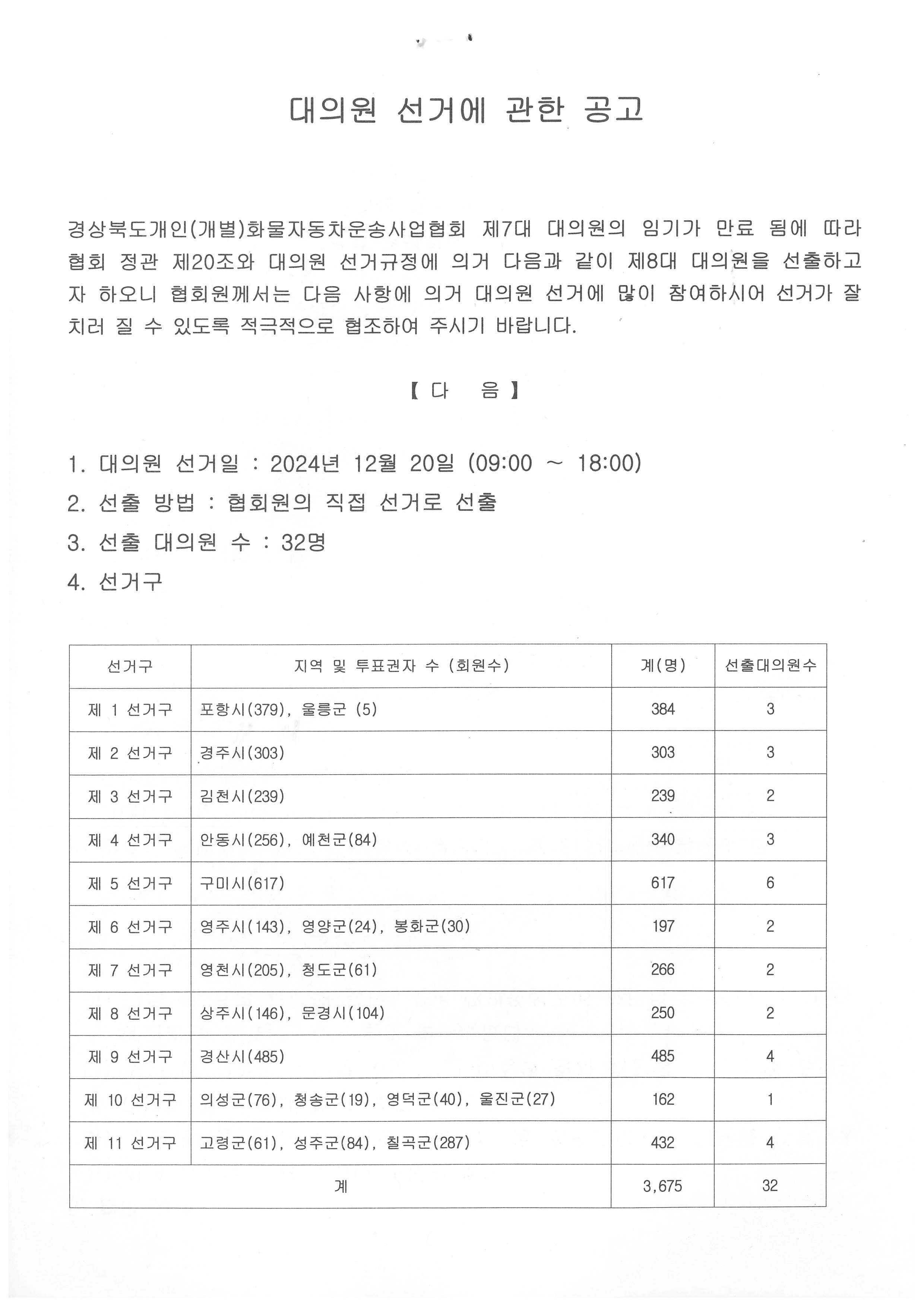 대의원 선거 공고(대의원 선거 규정)